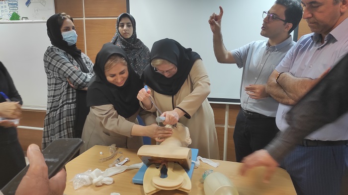 به گزارش روابط عمومی؛ کارگاه تئوری و عملی مدیریت راه هوایی پایه و پیشرفته با همکاری گروه سلامت در حوادث و بلایا دانشگاه علوم توانبخشی و سلامت اجتماعی روز چهارشنبه 24 خرداد در تالارسخن بیمارستان توانبخشی رفیده برگزار گردید. این کارگاه با هدف مرور بر اصول مدیریت راه هوایی و همچنین آشنایی با آخرین گایدلاین های موجود و کار عملی با تجهیزات مرتبط توسط دکتروحید دل شاد، دکتر آرش ستوده « رئیس اتاق عمل » و سیدآروین برزنجی « کارشناس ارشد بی هوشی و مراقبت های ویژه » همراه با تمرین بر مولاژ با مشارکت گروه های پزشکی و پرستاری بیمارستان رفیده و سایر مراکز درمانی – دانشگاهی استان تهران اجراء گردید.