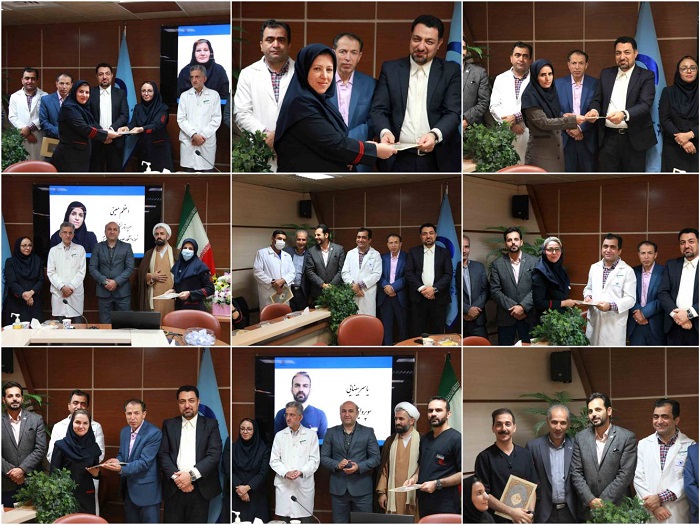 در این مراسم که روز چهارشنبه یکم آذر با حضور دکترغلامرضا معصومی معاون درمان و جمعی از مدیران آن حوزه، تیم مدیریتی بیمارستان، مسئولین بخش ها و جمعی از کارکنان حوزه پرستاری و اداری منعقد گردید از خدمات بی شائبه کارکنان حوزه پرستاری تقدیر و تشکر به عمل آمد. دکترمعصومی ضمن تبریک روز پرستار، با اشاره به اهمیت موضوعات صنفی کارکنان حوزه پرستاری از پیگیری های مستمر آن معاونت در به نتیجه رساندن مطالبات مذکور خبر داد. دکتر صیادنصیری نیز ضمن تبریک این مناسبت ارزشمند و قدردانی از خدمات مدیریت پرستاری و کارکنان آن حوزه به بیان مشکلات کادر درمان، تامین و جایگزینی نیروهای خروجی و همچنین توجه به مسایل معیشتی کارکنان پرداخت. در این نشست حجت الاسلام حافظی نماینده دفتر نهاد مقام معظم رهبری در رثای بانوی گرامی اسلام حضرت زینب کبری (س) به ایراد سخن پرداخته و در ادامه نیز جمع حاضر مستمع از اجرای موسیقی سنتی گردیدند. تقدیم هدایا توسط دکترسیناکشاورز معاون درمان، امیر انصاری مدیر، لیلی رادمند مترون و سایر مسئولین حاضر به منتخبین حوزه پرستاری و کمک پرستاری خانم ها ملک مرادزاده سوپروایزر کنترل عفونت به عنوان نمونه کشوری، اعظم معینی سرپرستار بخش کلینیک نمونه دانشگاه علوم پزشکی شهید بهشتی و مریم علیجانی، سحر قاسمی، رویا جلالی، مهتاب شریف محسنی، لیلا قاسمی، زهرا نادری، زهرا صدقی، حکیمه شیخی، آذر ژنبر، آمنه میرزایی و آقایان یاسر بیضایی، علی اکبر بهمنی، یوسف پاینده، امیر سورانی، رضا میری و علی نیرومند پایان بخش مراسم بود.